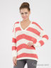 Чудесная кофта свободного покроя с V-образным вырезом горловины и длинными рукавами. Модель декорирована принтом в полоску. Изделие будет удачно гармонировать с различными элементами гардероба.