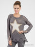 Прекрасный джемпер свободного силуэта. Модель с длинными рукавами и округлым вырезом горловины. Стильный вариант для создания привлекательного образа. Дополнено изделие контрастным принтом и декоративными элементами.