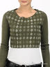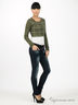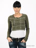 Детали: широкий округлый вырез горловины, длинный рукав, полочка декорирована аппликациями