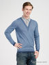 Стильный джемпер с длинными рукавами. Имитация 2 в 1: поло с отложным воротом и джемпер с V-образным вырезом. Застежка на две пуговицы на полочке. Выполнен из полушерстяного трикотажа средней плотности. Отличный вариант для тех, кто любит комфорт и качество.