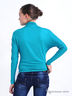 Эффектный облегающий джемпер из тонкого трикотажа. Ворот-стойка. Длинные цельнокроеные рукава "летучая мышь" облегающие от локтя. На плече собраны мелкими складками.
