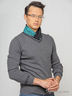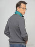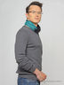 Модный пуловер из хлопкового рельефного трикотажа. V-образный вырез горловины. Укороченные рукава с манжетами. Ворот и манжеты декорированы тонкой, неяркой полосой. Полочка выполнена из гладкого трикотажа.
