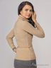 Детали: ворот-гольф. Длинные облегающие рукава с манжетами. Талия подчеркнута тонким пояском. Ворот, манжеты и низ изделия выполнены из рельефного материала.