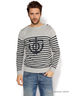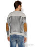 Мужской джемпер в полоску с длинными рукавами. Вырез-лодочка с 3 пуговицами на плече. Контрастные налокотники. Аппликация "якорь" спереди.