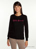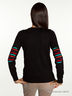 Однотонный женский джемпер с длинными рукавами и круглым вырезом. Облегающая модель с налокотниками в разноцветную полоску. Простроченные внешние швы. Логотип на груди.