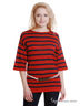 Джемпер из мягкого трикотажа в полоску. Широкие рукава 3/4. Вырез-лодочка. Прямой покрой. Продается с ремешком из плетеной веревки и коричневой кожи.