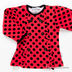 Детали: округлый вырез горловины, длинный прямой рукав, полочка декорирована оборками и пуговицами