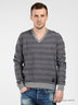 Классический пуловер прямого кроя. Выполнен из тонкой шерстяной ткани. V-образный вырез горловины. Длинные рукава с манжетами. Низ изделия украшен оригинальным принтом.