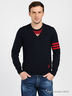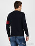 Потрясающий джемпер с эффектом двойки из трикотажа средней плотности, передняя часть на подкладке из тонкого трикотажа. Округлый вырез горловины, длинный рукав и низ изделия на манжете. Декорирован контрастными полосами на рукаве и вышивкой. Отличный вариант на каждый день.