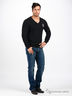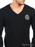 Стильный джемпер с V-образный вырезом горловины и длинными рукавами. Эта модель украшена нашивкой на полочке. Низ изделия, ворот и манжеты окантованы в рубчик. Джемпер, как правило, превосходно смотрится как классическими брюками, так и с джинсами. Джемпера всегда придают мужчинам более представительный, элегантный вид.