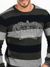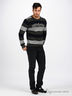 Стильный джемпер, с округлым вырезом горловины и длинными рукавами. Изделие украшено аппликацией и набивным рисунком на полочке. Низ изделия, ворот и манжеты окантованы в рубчик. Джемпер, как правило, превосходно смотрится как классическими брюками, так и с джинсами. Джемпера всегда придают мужчинам более представительный, элегантный вид.