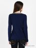Стильный джемпер с длинными рукавами и округлым вырезом горловины. Выполнен из тонкой полушерстяной ткани. Вырез оригинально украшен перламутровыми бусинами. Прекрасный вариант на каждый день.