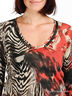Трикотажный джемпер с яркой, активной расцветкой. Круглая горловина выделяет шею. Длинные рукава. Универсальная и комфортная модель прекрасно подойдет для самых разных ситуаций. Выбор женщин, которые ценят удобство и стиль.