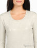 Легкий трикотажный джемпер из приятного на ощупь материала цвета серый меланж. Круглая горловина. Длинные рукава. Полочка декорирована прозрачными пайетками, что придает простому и комфортному джемперу очарование и оригинальность.