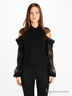 Приталенный трикотажный джемпер прекрасно садиться по фигуре и подчеркивает объемы. Широкий воротник стойка. Особая изюминка джемпера - воздушные шифоновые рукава с манжетами с игриво приоткрытыми плечиками. Сдержанная и оригинальная модель прекрасно подчеркнет Вашу естественную красоту.