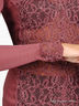 Элегантный и сексуальный джемпер из трикотажа в рубчик благородного винного цвета. V-образный вырез прекрасно подчеркнет Вашу грудь. Полочка целиком украшена кружевом в тон изделия.