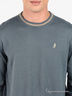 Детали: круглый вырез, длинные рукава, ворот, низ и манжеты - трикотажная резинка в мелкий рубчик