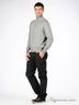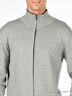Мужской джемпер из трикотажа средней плотности. Двойной воротник-стойка. Спереди застежка на металлическую молнию. Низ изделия и манжеты в виде широкой трикотажной резинки.