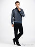 Стильный мужской джемпер с высоким воротником-стойкой. На полочке застежка на молнию. Актуальная во все времена расцветка в полоску.