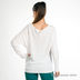 Джемпер женский белого цвета. Элегантный вырез "лодочка". Цельнокроеный рукав с заниженной проймой. Широкие манжеты на рукавах и по нижнему краю изделия.