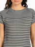 Женский трикотажный джемпер из полушерстяной ткани. Удлиненный силуэт. Короткий рукав-реглан. Округлый вырез горловины. Рельефная вязка.