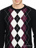 Теплый трикотажный джемпер свободного покроя. Круглая горловина в рубчик. Полочка декорирована классическим рисунком.