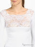 Джемпер из удивительно нежного, приятного на ощупь материала, который прекрасно поддерживает форму. Вырез каре. Длинные рукава. На лифе чувственная и элегантная вставка из кружева с атласной вышивкой.