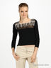 Джемпер из удивительно нежного, приятного на ощупь материала, который прекрасно поддерживает форму. Пикантная кокетка выполнена из черной тюли с нежной цветочной вышивкой в бело-розовых тонах. Длинные рукава.