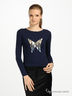 Джемпер из удивительно нежного, приятного на ощупь материала, который прекрасно поддерживает форму. Круглая горловина. Длинные рукава. Полочка декорирована серебристой аппликацией в виде бабочки и стразами. Горловина украшена блестками. Комфортная модель в темно-синей цвете благодаря ярким, но не вызывающим украшениям приобретает молодежное, игривое очарование.