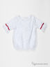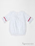 Нарядный джемпер для девочки из хб материала и сетчатой ткани с блестками. Округлый вырез горловины. Короткие рукава. Сзади застежка на пуговицу. Низ посажен на резинку.