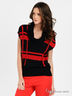 Детали: ворот-хомут, плечи слегка присборены в мелкие складки, декоративная аппликация в виде полосок на полочке