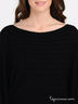 Стильный джемпер свободного силуэта из тонкой эластичной трикотажной ткани в крупный рубчик с округлым вырезом горловины. Длинный рукав - "летучая мышь" присборен на манжету из рибаны. Низ изделия присборен на высокую манжету из рибаны.