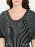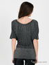 Оригинальный джемпер прилегающего силуэта выполнен из вискозного кашкорсе с люрексом. Округлый вырез горловины, широкий, короткий цельнокроеный рукав, низ изделия на высокой манжете из рибаны. Прекрасно сочетается с нарядом для вечернего отдыха.