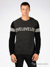 Замечательный джемпер с округлым вырезом горловины и длинными рукавами. Вырез горловины, манжеты рукавов и низ изделия окантованы в рубчик. Свободный покрой. Изделие декорировано принтом на груди и спине.
