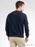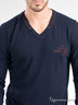 Джемпер мужской. Трикотажный мужской джемпер прямого кроя из приятного на ощупь материала. V-образная горловина. Длинные рукава. Манжеты и низ изделия посажены на трикотажную резинку. На полочке декоративная вышивка.