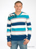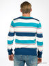 Джемпер тонкой вязки в широкую полоску. Вырез ворота V-образный. Рисунок-принт на плече впереди. Сзади - вышивка.