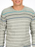 Классический джемпер тонкой вязки в контрастную полоску. Эффект вязки "наизнанку". На спине принт-логотип.