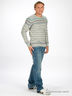 Классический джемпер тонкой вязки в контрастную полоску. Эффект вязки "наизнанку". На спине принт-логотип.