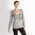 Джемпер с очаровательным бантом на полочке. Глубокий широкий вырез горловины, длинный рукав с небольшой трикотажной манжетой, подол изделия - трикотажная резинка, на спинке ткань немного присборена.