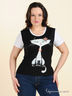 Детали: вырез горловины круглый, короткий рукав с подплечиком, ручная роспись по трикотажу: рисунок - город.
