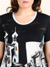 Детали: вырез горловины круглый, короткий рукав с подплечиком, по спинке вставка из основной ткани цвета-антипод с оригинальной росписью, ручная роспись по трикотажу: рисунок - кошка.
