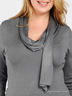 Детали: V-образный вырез горловины, длинный рукав, отстегивающийся декоративный шарф