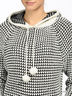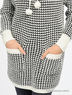 Джемпер оригинальной вязки с капюшоном, накладными карманами и помпонами.