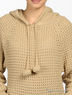 Джемпер оригинальной вязки с капюшоном, накладными карманами и помпонами.