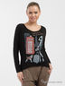 Замечательный джемпер с длинными рукавами и округлым вырезом горловины. Модель свободного кроя декорирована принтом.