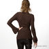 Стильный джемпер из мягкого трикотажа с объемным воротником-стойкой и длинными расклешенными рукавами. Свитер украшает узорная вязка. Трикотажный пояс подчеркнет Вашу талию.
