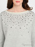 Оригинальный джемпер прямого кроя с круглым вырезом горловины и длинным рукавом. Выполнен из плотного слегка эластичного трикотажа с ворсистой внутренней частью. Декорирован оригинальными клепками в виде шипов на полочке. Отличный вариант для молодежи.