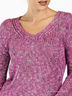 Оригинальный джемпер прямого кроя подойдет любительницам стильных и ярких вещей. Плотная ткань крупной вязки. V-образный вырез горловины. Длинный прямой рукав.