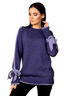 Детали: круглый вырез под горло, длинный рукав с завязками, манжеты в рубчик
