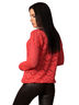 Детали: круглый вырез горловины, длинный рукав в рубчик, спущенная линия плеча